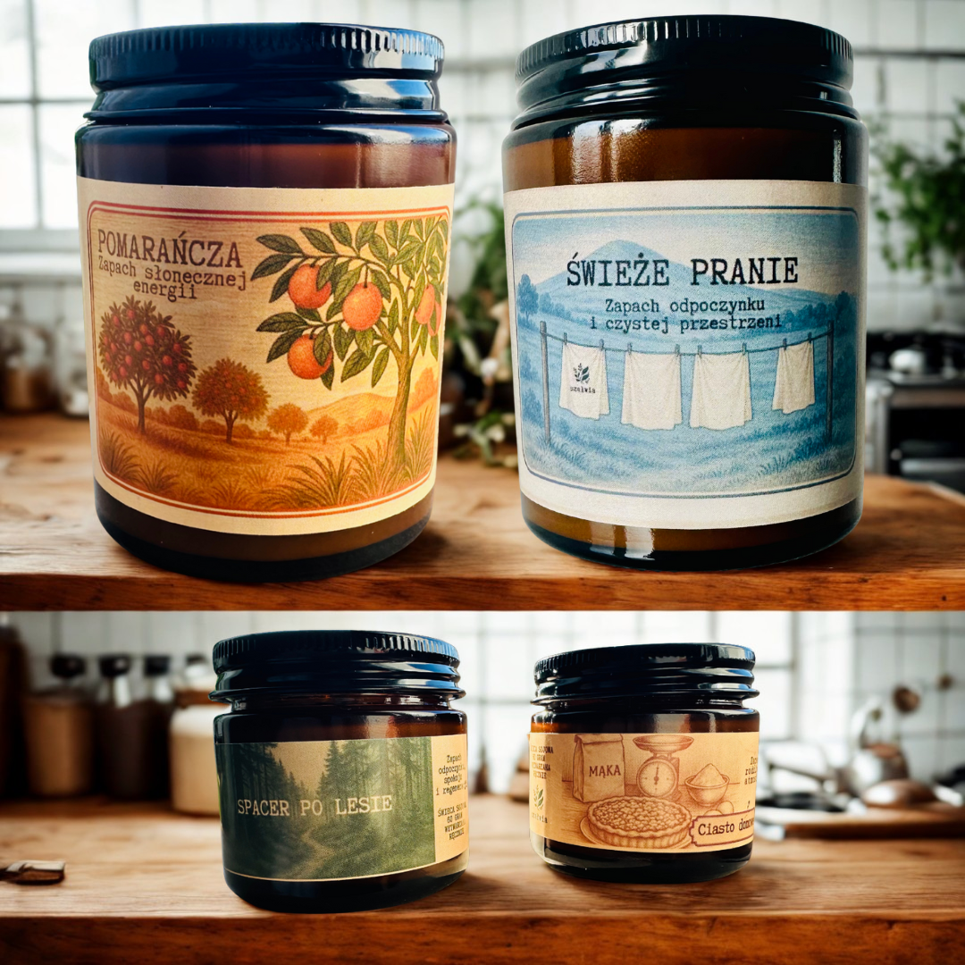 Pełnia zapachów, pełnia energii, pełnia harmonii. Zestaw „W Pełni” to kompozycja wszystkich świec Szałwii — od świeżości „Świeżego prania”, przez leśną głębię „Spaceru po lesie”, po słoneczną energię „Pomarańczy” i "domowe ciasto"